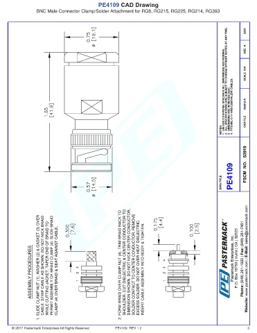 ASSEMBLY PROCEDURES SLIDE CLAMP NUT (1), WASHER (2) & GASKET (3) OVER CABLE. STRIP CABLE AS SHOWN. DO NOT NICK BRAID WHILE CUTTING JACKET. TAPER END OF BRAID TO PERMIT ASSEMBLY OF BRAID CLAMP (4). SLIDE BRAID CLAMP (4) OVER BRAID & SEAT AGAINST CABLE. 2. FORM BRAID OVER CLAMP NUT (4). TRIM BRAID BACK TO SHOULDER. CUT DIELECTRIC & CENTER CONDUCTOR TO DIMENSION SHOWN. DO NOT NICK CENTER CONDUCTOR. SOLDER CONTACT TO CENTER CONDUCTOR. REMOVE