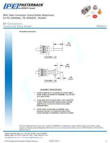 ing price, inventory and certifications: BNC Male Connector Clamp/Solder Attachment for PE-SR405AL, PE-SR405FL, -