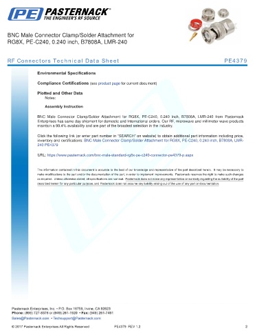 inventory and certifications: BNC Male Connector Clamp/Solder Attachment for RG8X, PE-C240, 0.240 inch, B7808A, LMR-