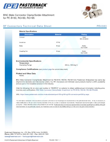 inventory and certifications: BNC Male Connector Clamp/Solder Attachment for PE-B150, RG180, RG195 PE4383