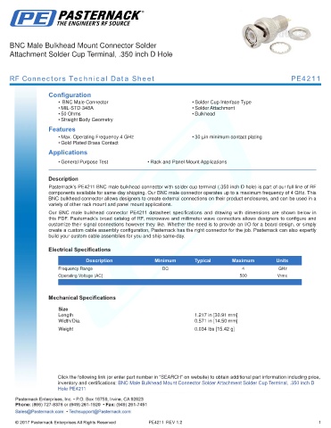 RF Connectors Technical Data Sheet PE4211