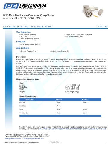 this PDF. Pasternack’s broad catalog of RF, microwave and millimeter wave connectors allows designers to configure and