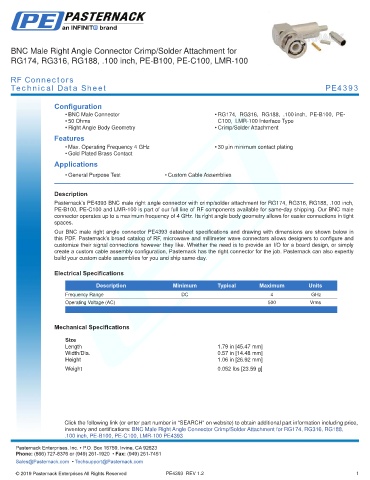 this PDF. Pasternack’s broad catalog of RF, microwave and millimeter wave connectors allows designers to configure and