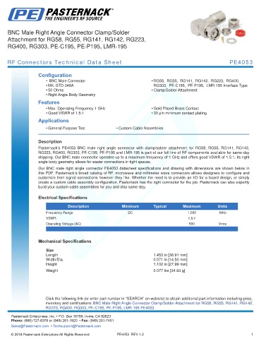 this PDF. Pasternack’s broad catalog of RF, microwave and millimeter wave connectors allows designers to configure and