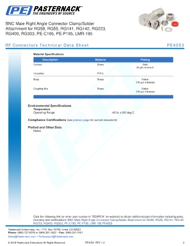 any representation or warranty regarding the suitability of the part described herein for any particular purpose, and Pasternack does not assume any liability arising out of the use of any part or documentation.
