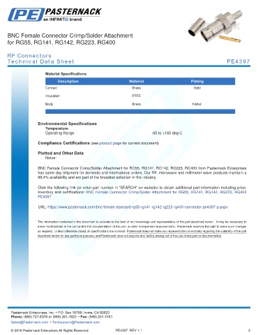 any representation or warranty regarding the suitability of the part described herein for any particular purpose, and Pasternack does not assume any liability arising out of the use of any part or documentation.