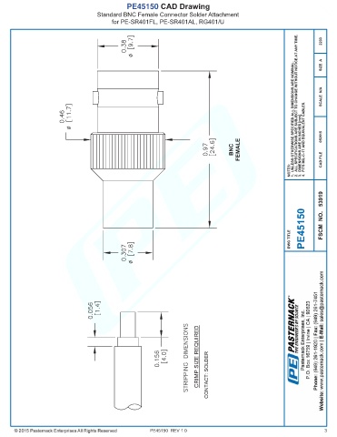 PE45150 CAD Drawing Standard BNC Female Connector Solder Attachment for PE-SR401FL, PE-SR401AL, RG401/U PE45150 REV 1.0 3