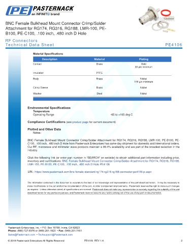 any representation or warranty regarding the suitability of the part described herein for any particular purpose, and Pasternack does not assume any liability arising out of the use of any part or documentation.