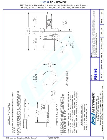 any representation or warranty regarding the suitability of the part described herein for any particular purpose, and Pasternack does not assume any liability arising out of the use of any part or documentation.