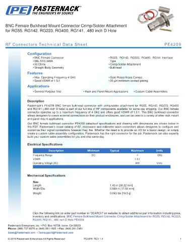 this PDF. Pasternack’s broad catalog of RF, microwave and millimeter wave connectors allows designers to configure and