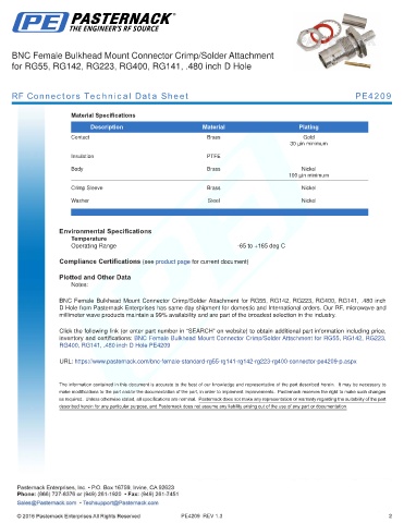 RF Connectors Technical Data Sheet PE4209