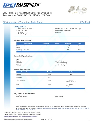 RF Connectors Technical Data Sheet PE45131
