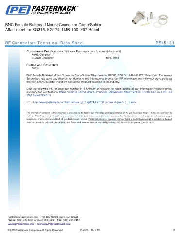 Compliance Certifications (visit www.Pasternack.com for current document)