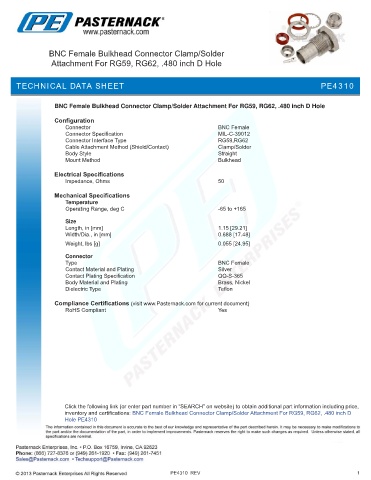 Compliance Certifications (visit www.Pasternack.com for current document)