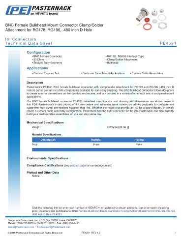 this PDF. Pasternack’s broad catalog of RF, microwave and millimeter wave connectors allows designers to configure and