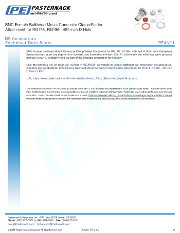 any representation or warranty regarding the suitability of the part described herein for any particular purpose, and Pasternack does not assume any liability arising out of the use of any part or documentation.