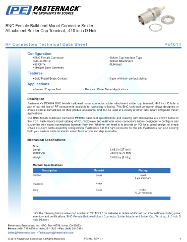 RF Connectors Technical Data Sheet PE4014