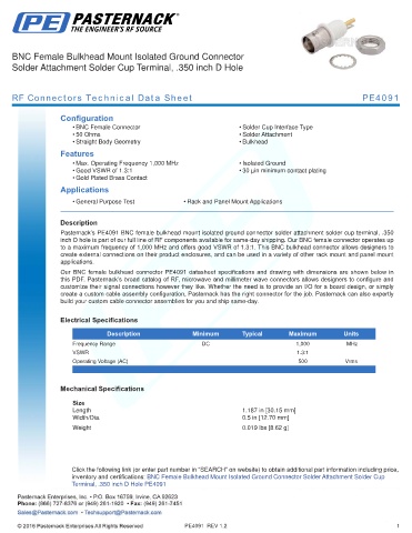 this PDF. Pasternack’s broad catalog of RF, microwave and millimeter wave connectors allows designers to configure and
