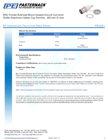 RF Connectors Technical Data Sheet PE4091
