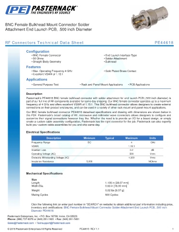 this PDF. Pasternack’s broad catalog of RF, microwave and millimeter wave connectors allows designers to configure and