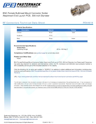 RF Connectors Technical Data Sheet PE44618