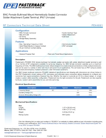 this PDF. Pasternack’s broad catalog of RF, microwave and millimeter wave connectors allows designers to configure and