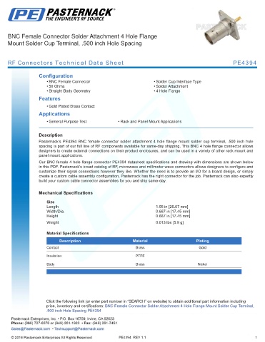 RF Connectors Technical Data Sheet PE4394