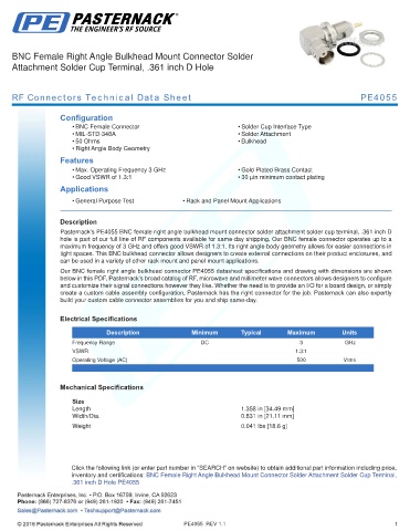 below in this PDF. Pasternack’s broad catalog of RF, microwave and millimeter wave connectors allows designers to configure