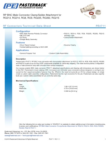 RF Connectors Technical Data Sheet PE4711