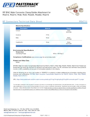 RF Connectors Technical Data Sheet PE4711