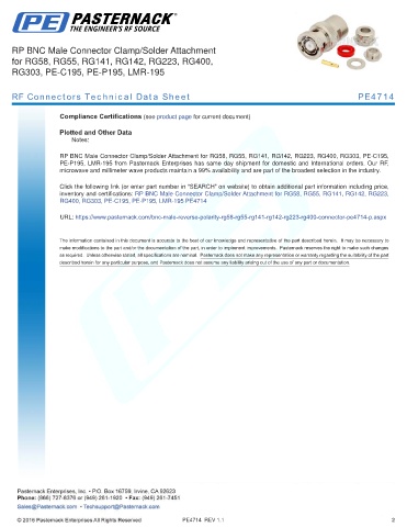 RF Connectors Technical Data Sheet PE4714