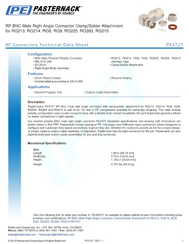 RF Connectors Technical Data Sheet PE4727