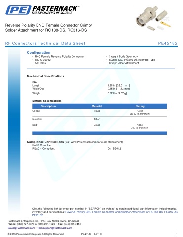 RF Connectors Technical Data Sheet PE45182