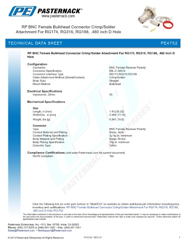 Compliance Certifications (visit www.Pasternack.com for current document)