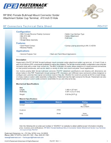 RF Connectors Technical Data Sheet PE4757