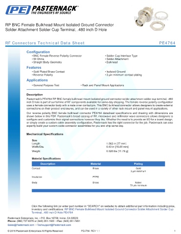 shown below in this PDF. Pasternack’s broad catalog of RF, microwave and millimeter wave connectors allows designers to