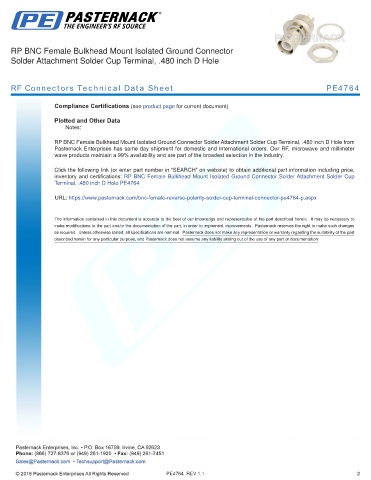 RF Connectors Technical Data Sheet PE4764
