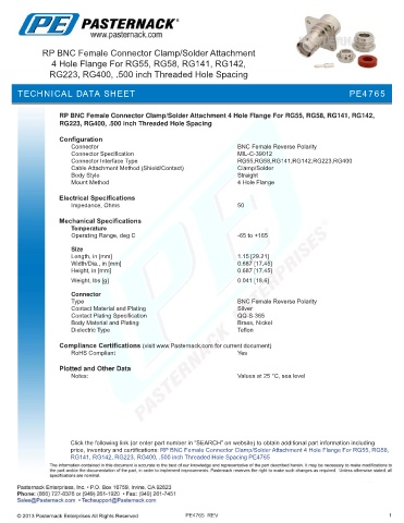 price, inventory and certifications: RP BNC Female Connector Clamp/Solder Attachment 4 Hole Flange For RG55, RG58,