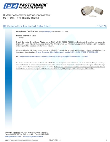 inventory and certifications: C Male Connector Crimp/Solder Attachment for RG214, RG9, RG225, RG393 PE4375