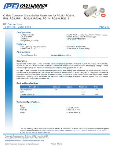 Pasternack’s PE4243 type C male connector with clamp/solder attachment for RG213, RG214, RG8, RG9, RG11, RG225,
