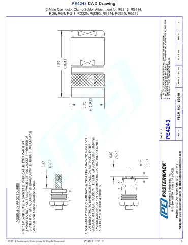 PE4243 CAD Drawing C Male Connector Clamp/Solder Attachment for RG213, RG214, RG8, RG9, RG11, RG225, RG393, RG144, RG216, RG215 PE4243 REV 1.2 3