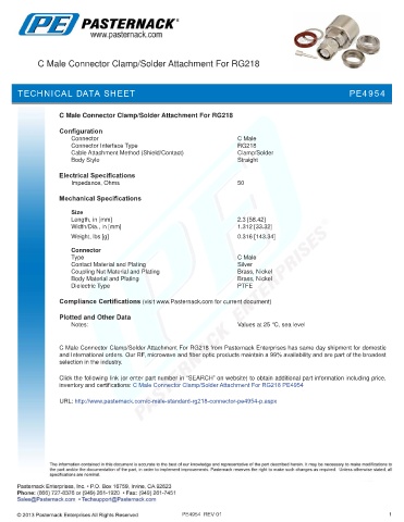 inventory and certifications: C Male Connector Clamp/Solder Attachment For RG218 PE4954
