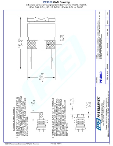 PE4960 CAD Drawing C Female Connector Clamp/Solder Attachment for RG213, RG214, RG8, RG9, RG11, RG225, RG393, RG144, RG216, RG215 PE4960 REV 1.1 3