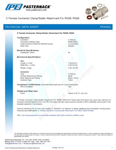 inventory and certifications: C Female Connector Clamp/Solder Attachment For RG59, RG62 PE4962