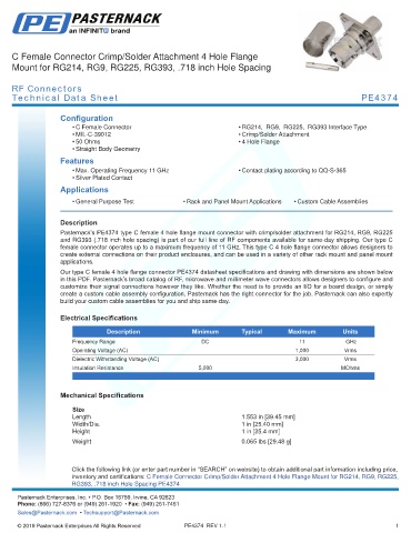 in this PDF. Pasternack’s broad catalog of RF, microwave and millimeter wave connectors allows designers to configure and