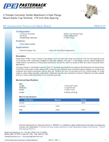 in this PDF. Pasternack’s broad catalog of RF, microwave and millimeter wave connectors allows designers to configure and