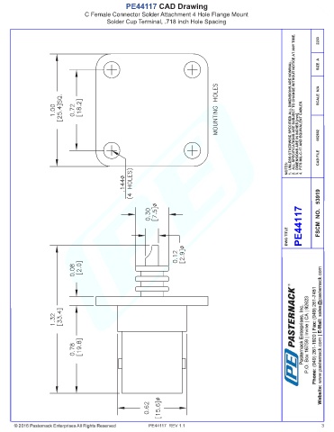 PE44117 CAD Drawing C Female Connector Solder Attachment 4 Hole Flange Mount Solder Cup Terminal, .718 inch Hole Spacing PE44117 REV 1.1 3