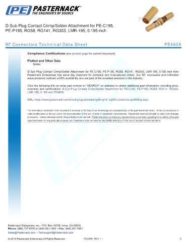 inventory and certifications: D-Sub Plug Contact Crimp/Solder Attachment for PE-C195, PE-P195, RG58, RG141, RG303,