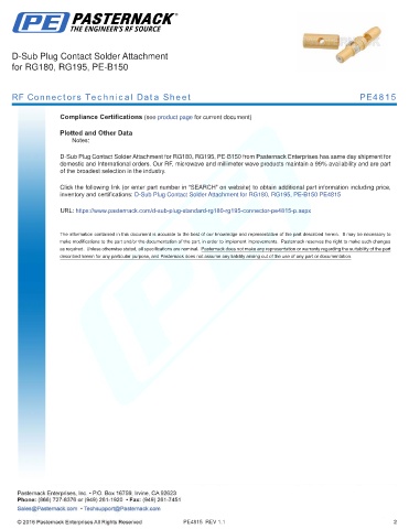 inventory and certifications: D-Sub Plug Contact Solder Attachment for RG180, RG195, PE-B150 PE4815