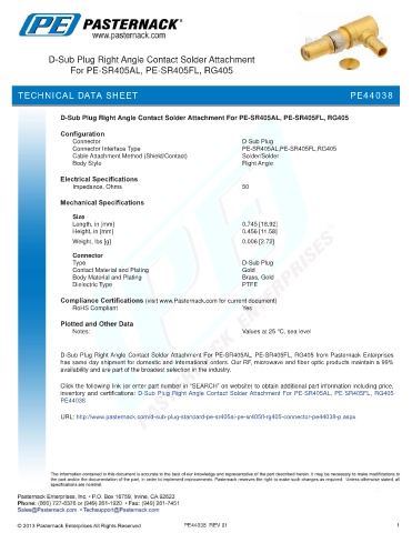URL: http://www.pasternack.com/d-sub-plug-standard-pe-sr405al-pe-sr405fl-rg405-connector-pe44038-p.aspx